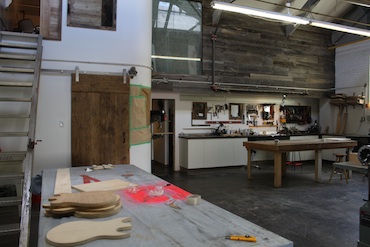 Paus and Paterson say their doors are always open for anyone who wants to test out their wares. Above the busy workshop floor is a cozy loft where finished instruments sit ready to be strummed. Each piece is imbued with unique tonal qualities and can be customized based on the musician’s sound preferences.