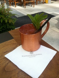 The Hotel Georgia’s Reflections Lounge head bartender, Robyn Gray, re-creates the original Moscow Mule recipe from L.A.’s Cock and Bull Tavern, which was originally whipped up by three friends post-Prohibition to help sell their stockpiles of ginger beer, vodka and copper.